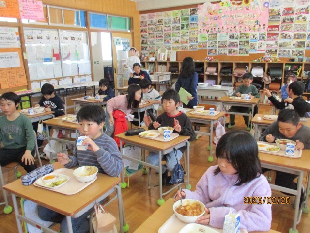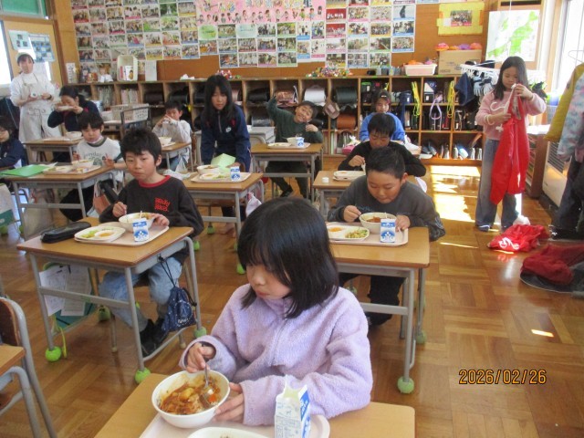 現在、かぜやインフルエンザが流行しやすい時期ではありますが、子どもたちは給食の時間になると元気いっぱい。しっかり食べることは、体を守る力(免疫)を高める大切な習慣です。今日のハヤシライスも、子どもたちの健康づくりに一役買ってくれたように思います。