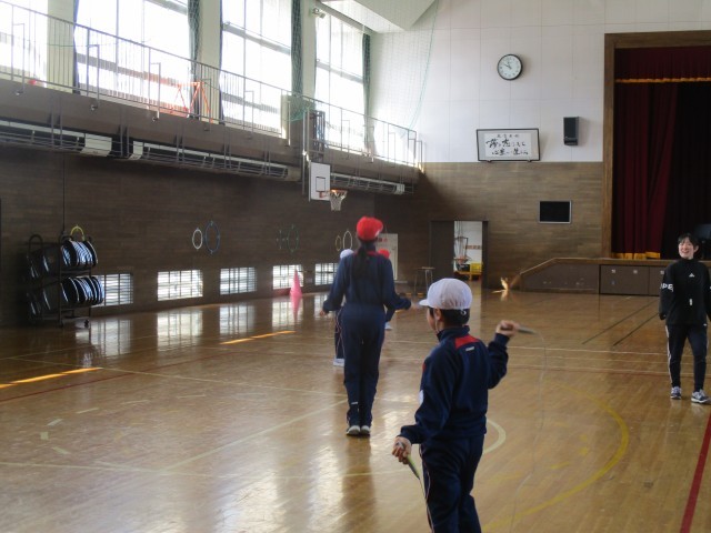 3年生は体育のなわ跳び。リズムを合わせて一斉に跳んだり、自分ができる技の回数増を目指して練習したりしています。3年生は、欠席者が0人で、みんなが元気そうです。