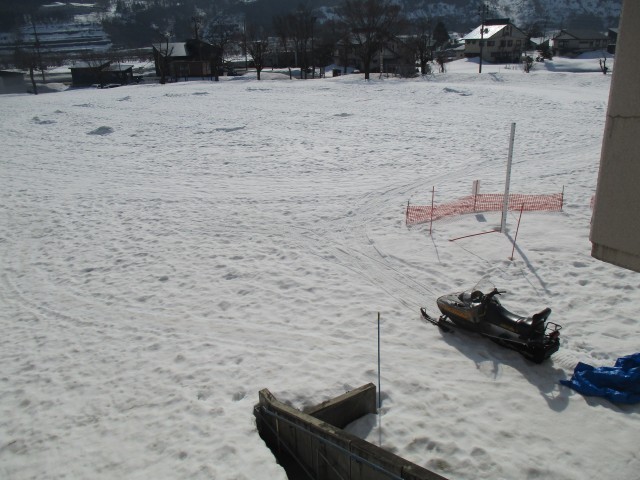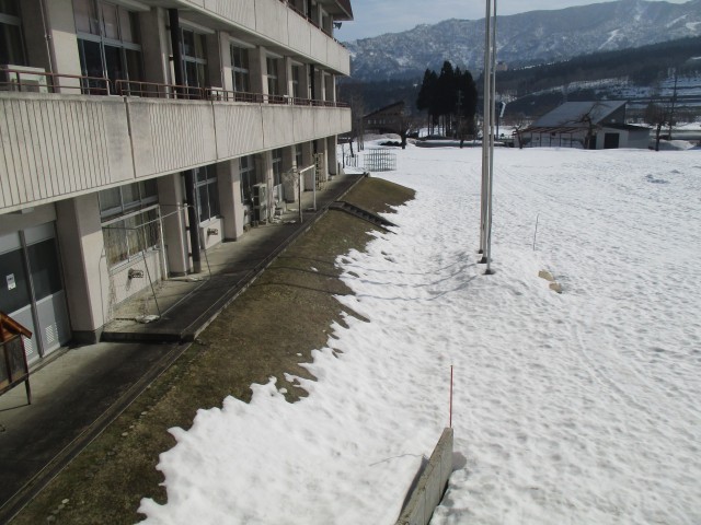 グラウンドに目を向けると、これまで白一色だった風景でしたが、雪解けが進み、地面の色があちこちに見え始めてきました。季節は着実に冬から春へと移行しているようです。
