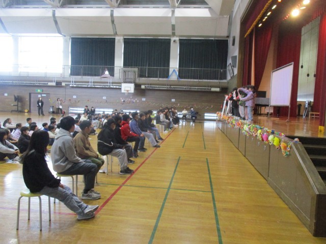 6年生20名が入場してくると、体育館は歓声と拍手で大盛り上がりです。