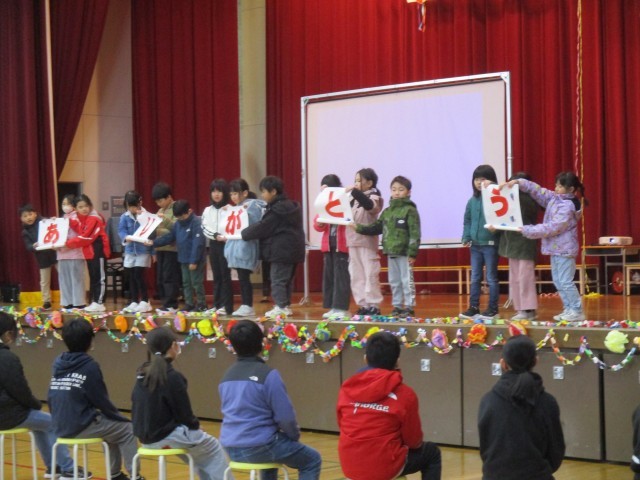 1~5年生の子どもたちは、会場の飾り付け、プレゼントやくす玉作り、ゲームの進行や開閉会のあいさつなど、様々な役割を分担し、自分たちの役割を全うしながら6年生に感謝の思いを届けました。