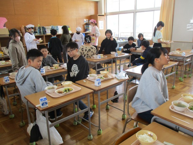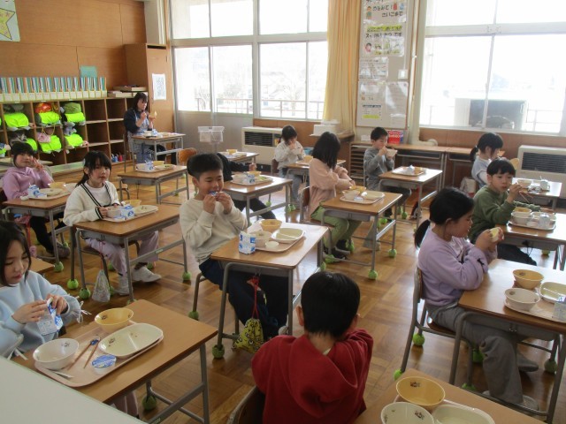 【感謝の言葉】毎日、安全でおいしい給食を提供するために、早朝から準備を進め、衛生管理に細心の注意を払い、子どもたちの健康と成長を支えてくださった調理員の皆さんに、心より感謝申し上げます。季節や行事に合わせた工夫、食材の良さを生かした味付け、そして何より「子どもたちに喜んでほしい」という思いが、日々の給食からしっかりと伝わってきました。一年間、本当にありがとうございました。調理員の皆さんの思いが、子どもたちの健やかな成長につながっています。これからもどうぞよろしくお願いいたします。(4月からこの給食を食べることができない・・・と考えると、寂しい限りです。by6年生)