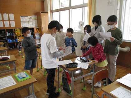 2限は、同じ町内や登校班ごとに集まり、登校時の集合時刻や集合場所、登校時に気をつけることなどを話し合い、確認しました。今週から集団登校を始めた新1年生に分かりやすく、親切に伝えようとする上級生の姿がとても微笑ましかったです。