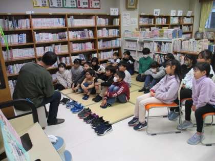 今日は、先週に引き続き、全校読み聞かせの会がありました。前回と同様に5冊の本(「ありがとうともだち」「小さな大きな木」「ラージャのカレー」「エゾオオカミ」「とんがとぴんがのプレゼント」)から、子どもたちが本を選び、その会場へ移動して読み聞かせをしていただきました。読み手の方の声以外は聞こえない静まり返った各会場、読み手の方の張りのある声、物語の急展開に思わず上がる子どもたちの感嘆の声など、よい雰囲気の中での読書会となりました。