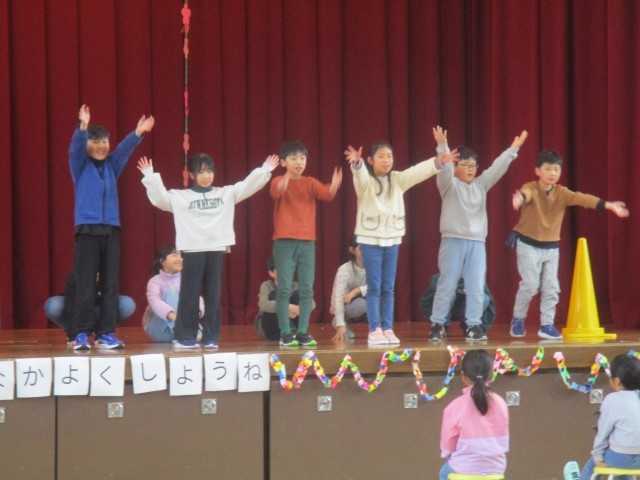 歓迎の出し物や全校ゲーム、プレゼント渡しなど、心温まる1時間となりました。
