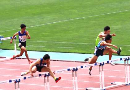 陸上競技には、県総体に加えて、高いレベルの参加標準記録を突破した選手で競う通信陸上県大会があります。