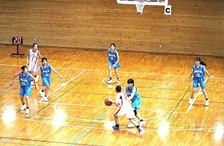 部員が7名と少ない中、本当によく頑張っています。シード順の関係で、登場は二回戦から。練習の成果を十分発揮して大量得点を挙げ、危なげない試合運びで勝利し、決勝にコマを進めました。