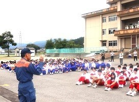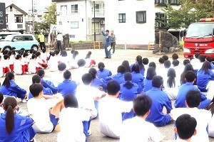 南魚沼消防署からご協力いただき、全校一斉の防災学習(学年によって内容が異なります)と火災想定の避難訓練を行いました。