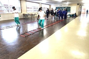 最初に市教育委員会の指導主事から、部活動の地域展開に関する説明があり、次に中学校1年生と6年生の交流レクリエーション(フルーツバスケットの拡大版!)、最後が部活動体験でした。