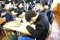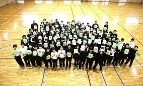 「楽」「新」「挑」など、それぞれが思いを込めて書き、全員でそれを持ってパチリ。