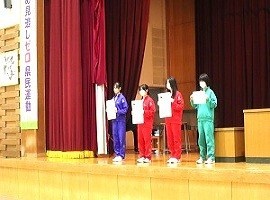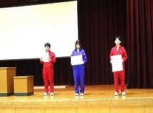 また、各種の入賞者、合格者(駅伝、吹奏楽アンサンブルコンテスト、バスケットボール、読書感想文、人権作文、英語検定、漢字検定)への賞状・合格証の伝達も行いました。