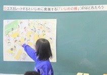 学級での話合いの内容は、ある学級の様子を描いた一枚の絵から「いじめ」につながる行動や態度について考えるというものです。