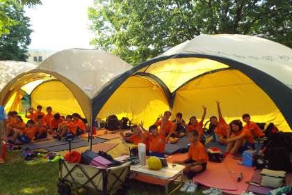 開会式は、グラウンドに整列はせず自分の学校のテントの中で、選手宣誓の生徒のみがグラウンドに行き選手宣誓をしました。