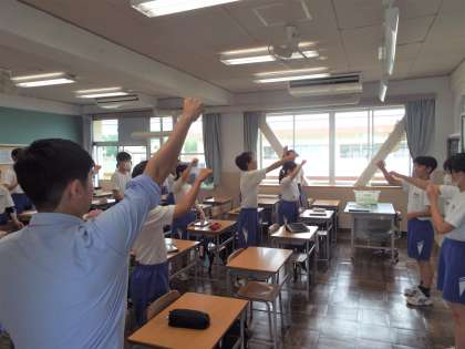 今朝は各学級で応援練習です。