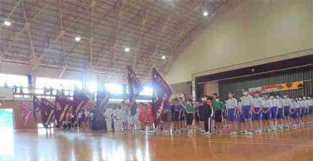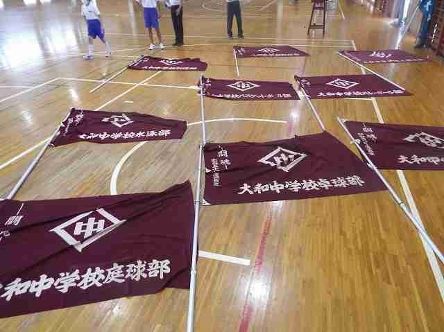 新チーム激励会(運動部のほか、吹奏楽部と美術部も激励を受けます。)