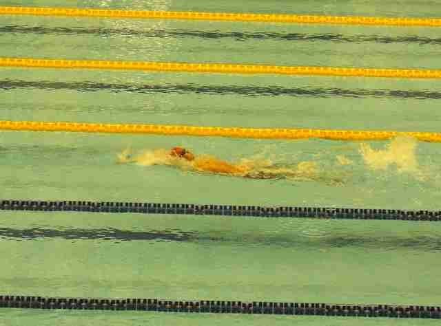 自由形も背泳ぎもトップでゴール、予選1位通過です。