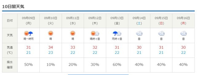 9/6 来週は暑さが増す予報です。熱中症対策をお願いします。