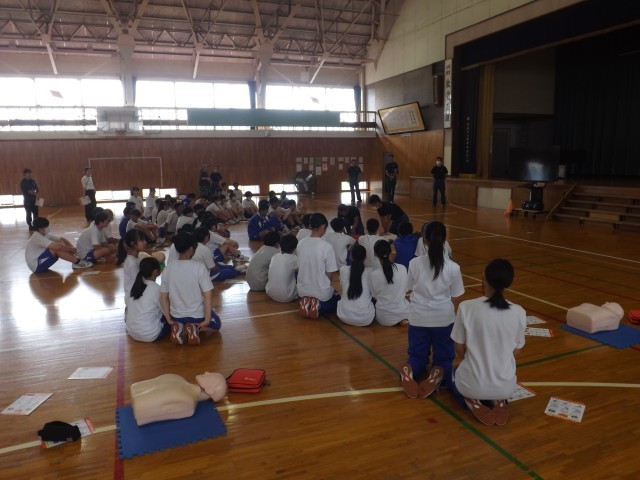 本日、2年生を対象とした救急法講習会が実施されました。今回の講習では、心肺蘇生法とAEDの使用方法について学びました。