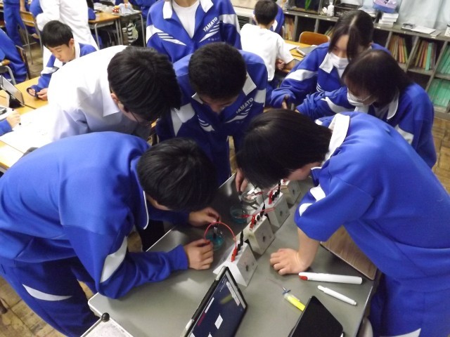 授業では、実験結果をもとに、生徒一人ひとりが自分の考えを班の仲間に説明し合っていました。その説明の後には、「なぜ?」「どうしてそう考えたの?」といった問いかけを通して、互いの考えをさらに深掘りする様子が見られました。