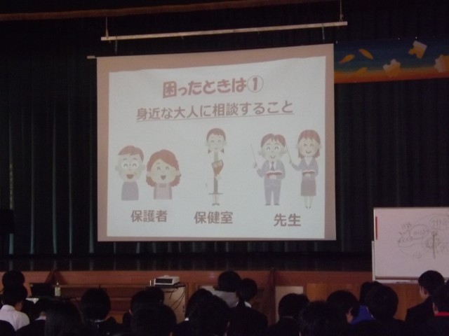 中学校を卒業すると、これまで以上に多くの人と関わる機会が増えていきます。今日の講話をきっかけに、自分自身の体や心、そして他者との関わりについて、より深く考えるきっかけになったと思います。