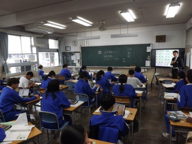 授業のまとめでは、ワークシートに記入した自分たちの考えをまとめ、電子黒板を使って共有しました(画像4枚目)。仲間の考えに触れ、「そういうことか!」と気づきを得る場面もあり、まさに主体的に学び、仲間と協働することで理解を深めている様子でした。