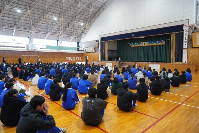 本日午後、地震を想定した避難訓練を行いました。廊下の移動時には、天井からの落下物に備えてノートなどで頭を保護し、机の下に入るなど安全確保の行動を確認しました。
