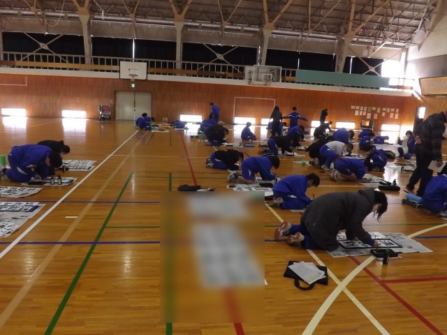 生徒たちは時間いっぱい使って、意欲的に取り組み、自分の名前を書くまで集中していました。時間の終わり頃には、ステージに力作がずらりと並んでいました。