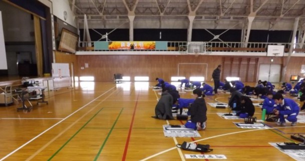本日をもって、書写の授業が最終日となりました。限られた時間の中で清書まで仕上げることは、どの生徒にとっても大変だったと思いますが、皆さん熱心に取り組んでいました。寒い体育館という環境にもかかわらず、集中して頑張っていました!