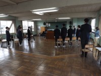 アルペンスキー大会に出場する選手の激励会が行われました。スタジオになっている音楽室には、応援団の指揮のもと、元気いっぱいのエールが響き渡っていました。