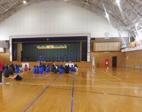 これまで取り組んできたダンス練習の成果発表を行いました。約1分間、軽快な音楽に合わせ、最初から決められた振り付けに加えて、自分たちで考えた動きを盛り込んだダンスを発表しました。