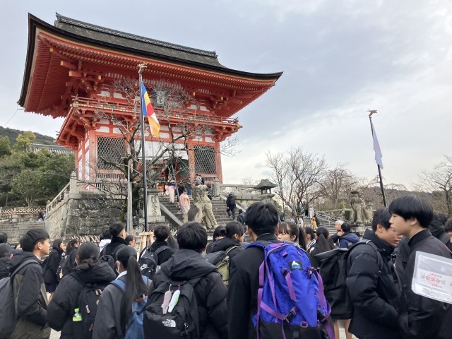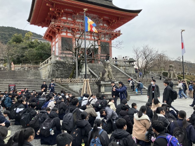 タクシー研修を終えて、清水寺に集合しました。この後、クラス別写真を撮影して、自由散策となります。
