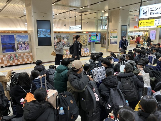クラス別研修が終わり、全クラス京都駅に。すでに1230現在改札を通過。1310までトイレ&ラストお土産タイムとします。