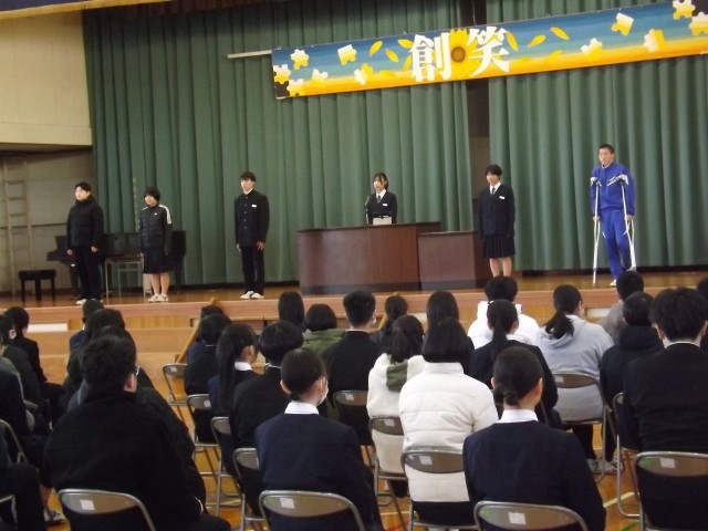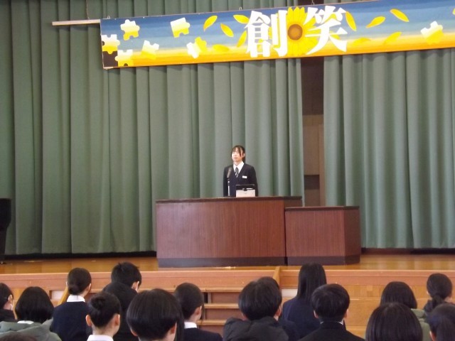 本日、同窓会長をお招きし、3月末で卒業する3年生の同窓会入会式を開催しました。