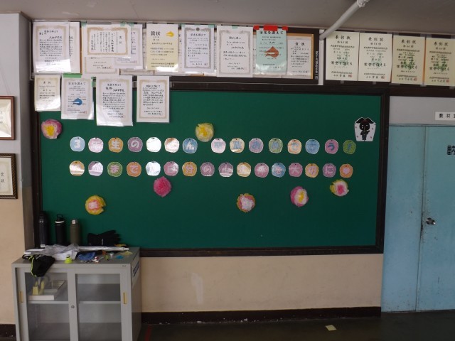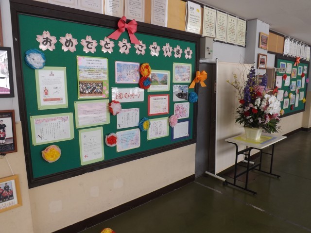 また、中央廊下には、卒業式でいただいた祝電や、地域の方から贈られた美しいお花があり、温かな気持ちを改めて感じました。