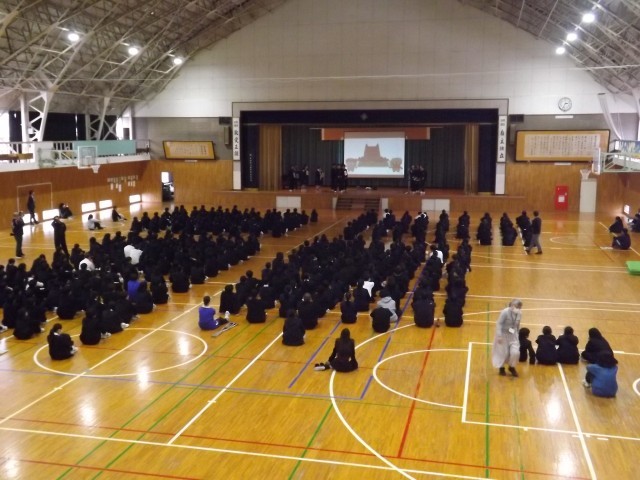 本日午後、生徒会入会式がありました。前半には生徒会執行部や専門委員長による委員会活動などの紹介がありました。その紹介も劇仕立てになっていて、楽しみながら活動内容を理解することができたと思います。また、後半は各部活動の紹介でした。それぞれの部活動が工夫を凝らして、自分たちの活動の魅力をしっかりと紹介していました。