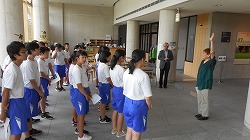 先々週から美術の授業の一環として学級ごとに、池田記念美術館へ行っています。昼休みから5限にかけてと、在館時間は30分程度ですが、日頃なかなか触れる機会のない美術品や、地域の豊かな自然を撮影した写真などを観賞しています。芸術的な作品などから様々なことを感じ取り、豊かな心を育む機会になればと考えています。(写真右は先週の1年2組)