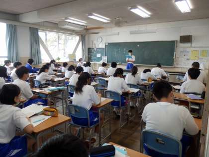 国語の授業では全学年が、8月に行われる「郡市わたしの主張大会」に向けて、意見文を書いています。身の回りの身近な問題や新聞記事やニュースなどから自分が考えたことを題材に自分の考えを作文するものです。現在、各学級では発表会を行い、お互いの主張を聞き合っています。自分とは違う考えがあることを知り、見聞を広めると共に、お互いの違いやよさを認め合う、よりよい人間関係を気づいてほしいと願っています。