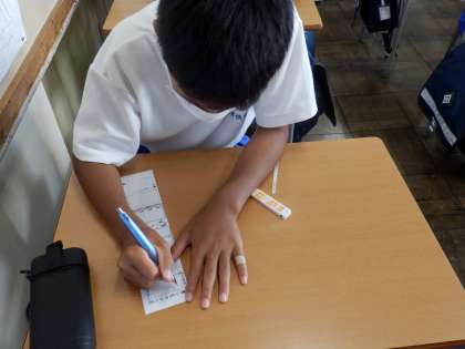 運動会終了後の4限の授業は全校が、運動会の「振り返り」を行いました。自己評価や運動会を終えての感想、自軍の先輩や後輩、仲間達に向けてメッセージ書き。どの生徒も達成感に満ちた表情で記入していました。運動会をとおして学んだ「仲間との協力」、「互いに認め合い高め合うこと」、「諦めず最後までやり抜くこと」などをこれからの学校生活や自分の生き方に生かしていってほしいです。