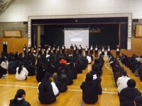 また、午後からは三用小、赤石小の6年生が来校しました。校長が学校の歴史や取組などを説明した後、校内を案内しました。その後、教頭が「大人になるとはどんなことができることか?」について話をしました。(写真はダンス授業の様子と小学生に校長が話をしている様子です)