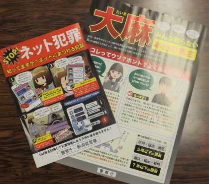現在、中学生でも大きな問題となっている大麻とネット犯罪のリーフレットをいただきましたので掲載します。保護者の皆様にも是非お読みいただきたいと思います。