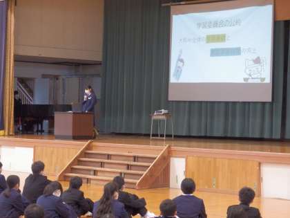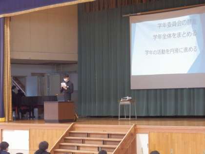 第1部は生徒会活動や各専門委員会の仕事内容について各委員長が説明しました。