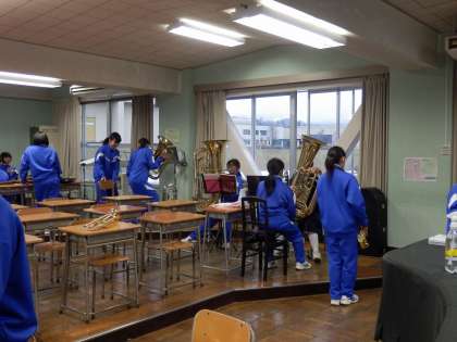 写真は卓球部、バレー部、吹奏楽部の様子です。