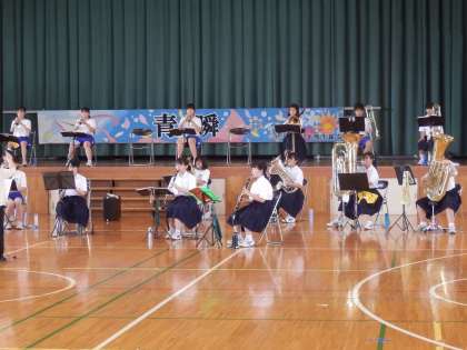 中越大会の関係で体育館を使用する部活動がないので、吹奏楽部が体育館を使って演奏をしていました。