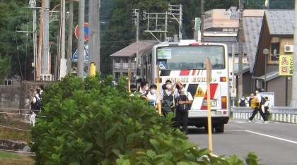 3年部職員が朝から声掛けをしています。