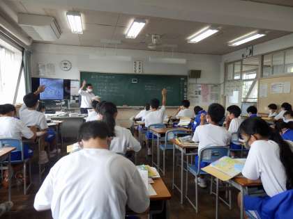 1年生の社会科の授業では「アジア」についての学習でした。初日である今日は、まずはアジアについてどんなイメージを持っているか。「大きい」「人が多い」「発展しているところと、そうでないところがある」などが出てきました。