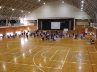 ソフトテニスとサッカーは雪への穴開け作業