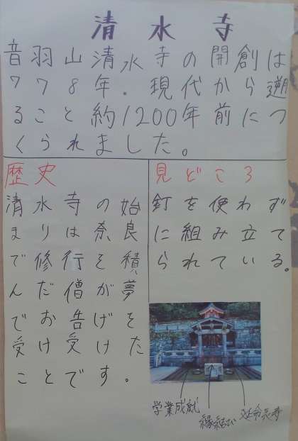 2/13 修学旅行掲示、清水寺と東大寺