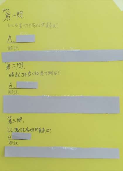 記憶力に関係のある食べ物なども掲載され、3年生への思いが込められています。