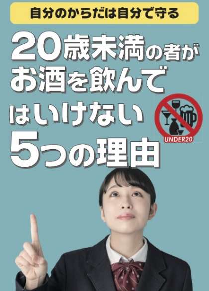 20歳未満の者の飲酒は、法律により禁止されています。 に違反した場合は50万円以下の罰金が課されることとされています。