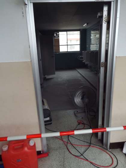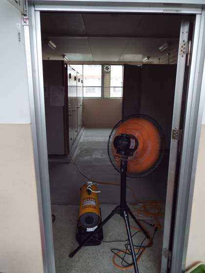 現在はフラットにした床を乾燥させる作業が進んでいます。